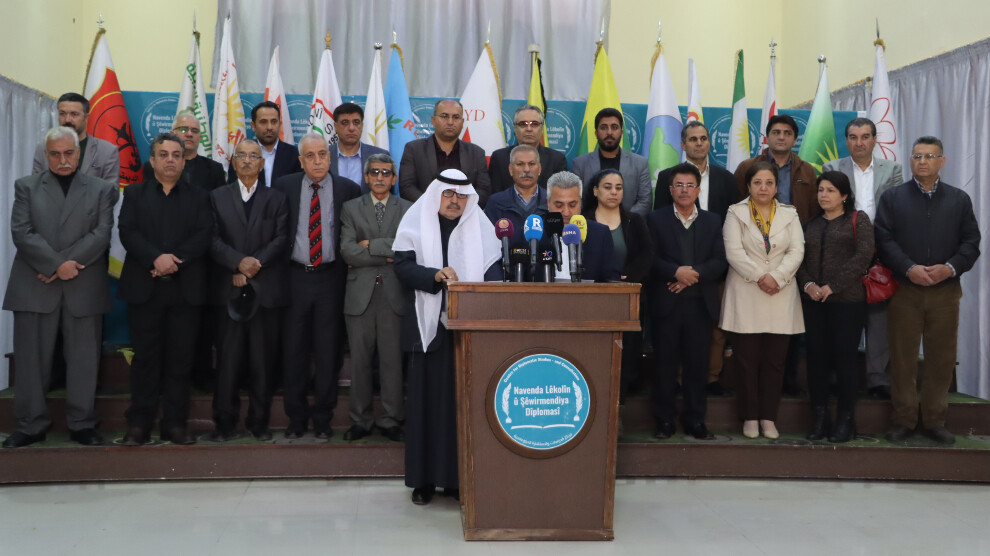 عقدت، اليوم، الأحزاب والحركات السياسية في شمال وشرق سوريا، مؤتمراً صحفياً مشتركاً، في مركز الدراسات والعلاقات الدبلوماسية لشمال وشرق سوريا، في مدينة قامشلو، بحضور العشرات من الوسائل الإعلامية.