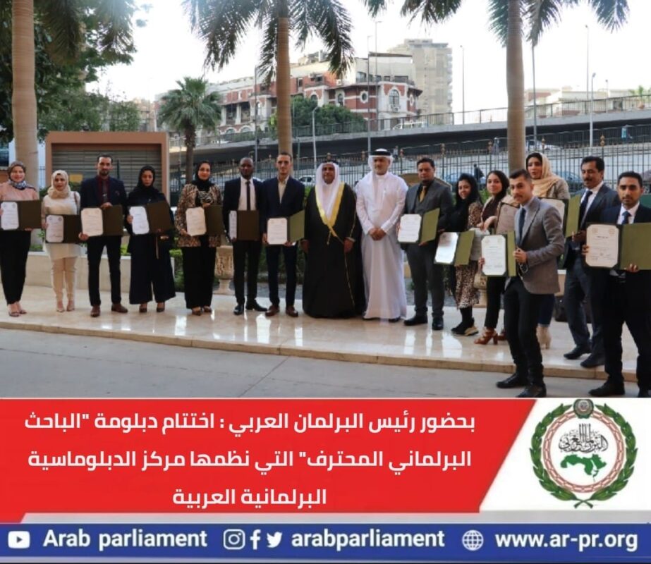 وأكد “العسومي” حرص البرلمان العربي على تنظيم مثل هذه الدورات التدريبية والدبلومات من خلال مركز الدبلوماسية البرلمانية العربية، وذلك فى إطار خطة عمله السنوية والتي تهدف إلى تبادل الخبرات والتنسيق فيما بين ممثلي البرلمانات العربية في كافة الجوانب والمجالات وتعزيز الثقافة البرلمانية العربية.
