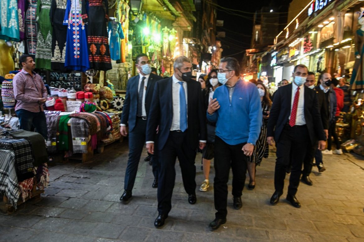 وعقب اللقاء، قام الوزير والأمين العام للمنظمة، بجولة في منطقة القاهرة التاريخية وخان الخليلي، وتحدثا مع أصحاب البازارات عن السياحة وأهميتها.