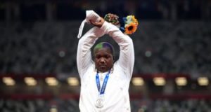 وقفة صامتة للاعبة أمريكية على منصة تتويج الأولمبياد تضامنا مع المضطهدين.. صور