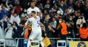 بنزيما وفينيسيوس ورودريجو فى هجوم ريال مدريد ضد مان سيتي بدوري الأبطال