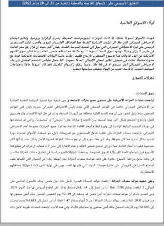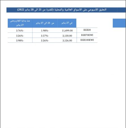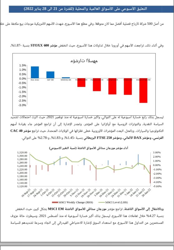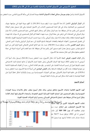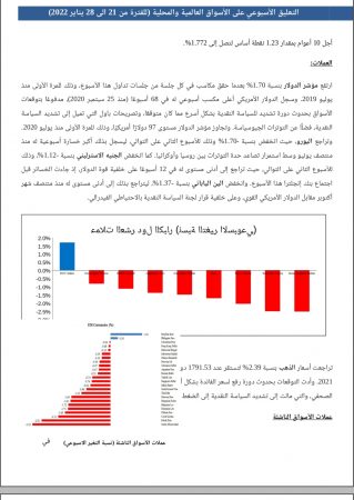 التعليق الأسبوعي علي الأسواق العالمية والمحلية ( للفترة من21 الي 28يناير 2022)