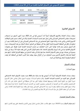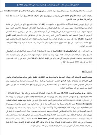 التعليق الإسبوعي الأسواق العالمية خلال الفترة من 3 فبراير الي 10 فبراير 2023.