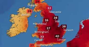 وأضافوا أن هناك احتمالا بنسبة 50% أن تصل درجات الحرارة إلى 40 درجة مئوية (104 فهرنهايت) في إحدى المناطق البريطانية يوم الثلاثاء.