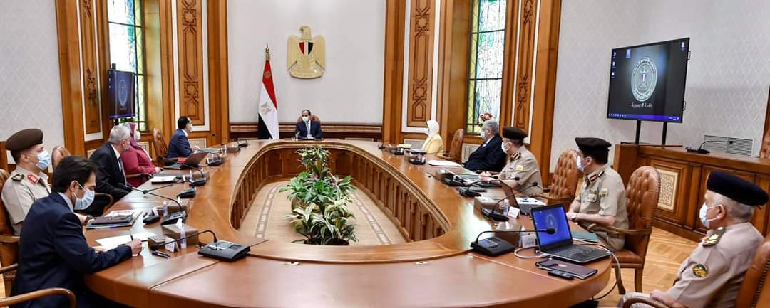 اجتمع السيد الرئيس عبد الفتاح السيسي اليوم مع الدكتور مصطفي مدبولي رئيس مجلس الوزراء، والدكتورة هالة زايد وزيرة الصحة والسكان، والسيدة نيفين القباج وزيرة التضامن الاجتماعي، والدكتور محمد عوض تاج الدين مستشار رئيس الجمهورية لشئون الصحة والوقاية، واللواء طبيب بهاء الدين زيدان رئيس مجلس إدارة الهيئة المصرية للشراء الموحد، واللواء السيد الغالي مساعد رئيس أركان حرب القوات المسلحة لرعاية أسر الشهداء والمصابين والرعاية الاجتماعية، واللواء أ.ح أحمد الصيفي رئيس هيئة الإمداد والتموين للقوات المسلحة، واللواء طبيب مجدي مبارك مدير إدارة الخدمات الطبية للقوات المسلحة، واللواء طبيب عيد الطويل مدير مركز الطب الطبيعي والتأهيلي وعلاج الروماتيزم بالقوات المسلحة.