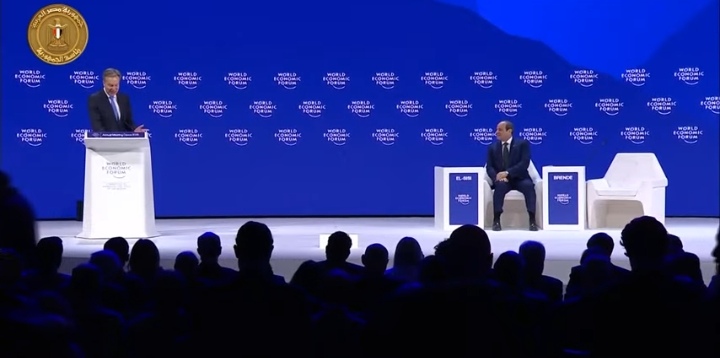 الرئيس عبد الفتاح السيسي يلتقي الرئيس والمدير التنفيذي للمنتدى الاقتصادي العالمي في دافوس.. فيديو