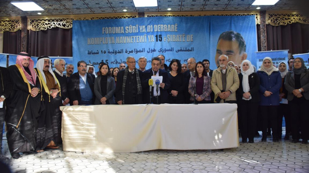 أختتم الملتقى السوري حول المؤامرة الدولية ببيان مخرجاته لضمان حرية القائد عبدالله أوجلان ومن أهمها إن قضية الحرية الجسدية للقائد أوجلان من القضايا المحورية للسوريين.