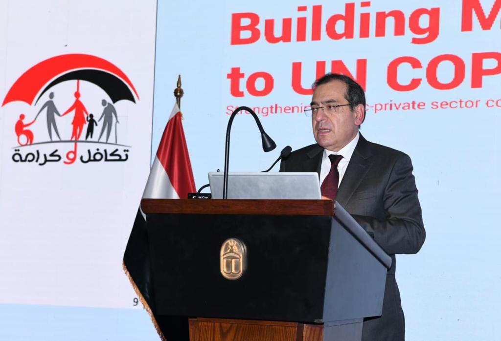 جاء ذلك خلال كلمة الوزير أمام المنتدى الذي نظمته غرفة التجارة الأمريكية بالقاهرة ومجلس الأعمال المصري الأمريكى بمشاركة افتراضية من الدكتور مصطفى مدبولى رئيس مجلس الوزراء و السيد جون كيري المبعوث الرئاسي الأمريكى للمناخ بحضور ومشاركة عدد من وزراء الحكومة والسفير الأمريكى بالقاهرة وعدد من رؤساء شركات البترول العالمية وذلك تحت عنوان “بناء الزخم نحو قمة المناخ COP27 … تعزيز التعاون بين القطاعين العام والخاص لمواجهة تحديات المناخ”.