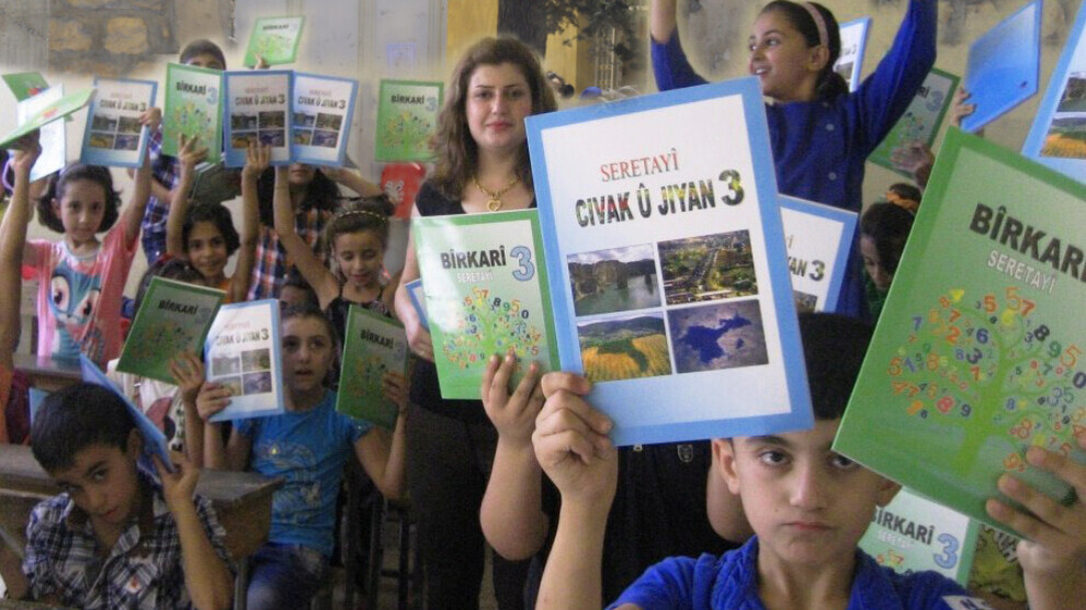 وتم قبول الكردية والعربية والسريانية كلغات رسمية في المنطقة بالقرار الذي اتخذته الإدارة الذاتية في روج آفا على أساس نموذج الأمة الديمقراطية، بدأ هذا العمل في عام 2011 كدورة تدريب اللغة الكردية في المنازل، وبعد فترة قصيرة من الوقت بدأ تدريجياً تطبيقه في المدارس، حيث تم إدخال اللغة الكردية كلغة التعليم في مدارس المنطقة في العام الدراسي 2012-2013، وتم إعداد المواد التعليمية باللغة الكردية منذ عام 2014.