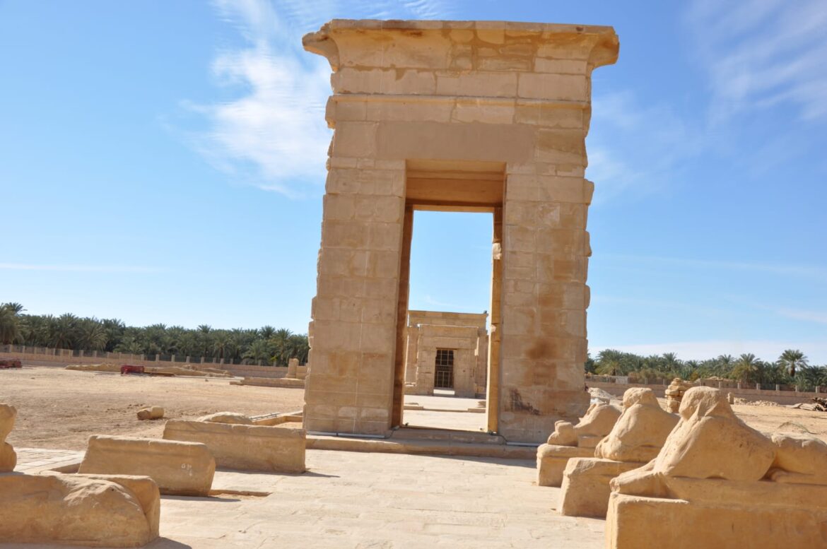 -معبد هيبس: شيد من الحجر الرملي ويعتقد أنه أسس في عهد الملكين بسماتيك الثانى وواح إيب رع “إبريس” واستكمل البناء والنقوش الملكين داريوس الأول وأخوريس.