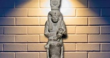 يعرض تمثال من الشست، للمعبودة ”إيزيس“ على رأسها تاج من العصر اليوناني الروماني.