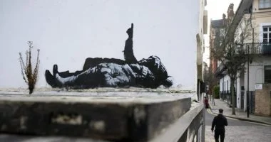ظهر عمل فني جديد للفنان البريطاني المجهول بانكسي على جدار في غرب لندن، عبارة عن صورة طفلين يرتديان ملابس شتوية وينظران إلى السماء، وفقا لما نشره موقع “news.artnet”.