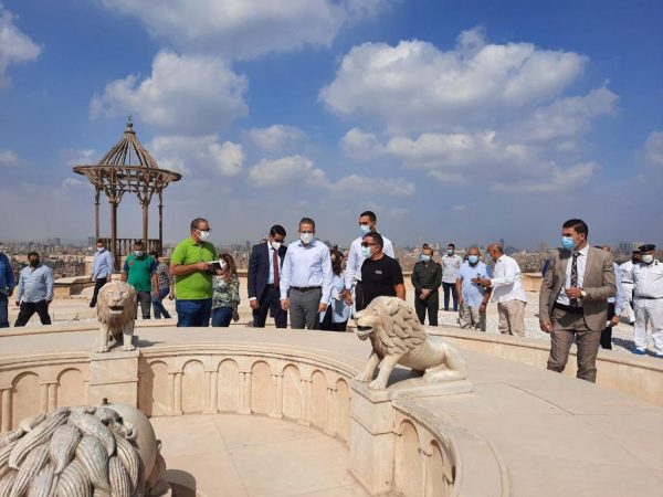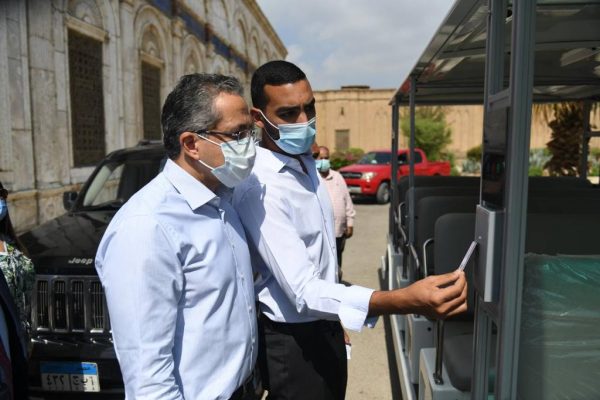 رافقه خلال الجولة العميد مهندس هشام سمير مساعد الوزير للشؤون الهندسية و الأستاذ أحمد عبيد مساعد الوزير لشئون مكتب الوزير و الدكتور أسامة طلعت رئيس قطاع الآثار الإسلامية والقبطية واليهودية و الأستاذة ايمان زيدان المشرف العام على تطوير الخدمات بالمواقع الأثرية والمتاحف.