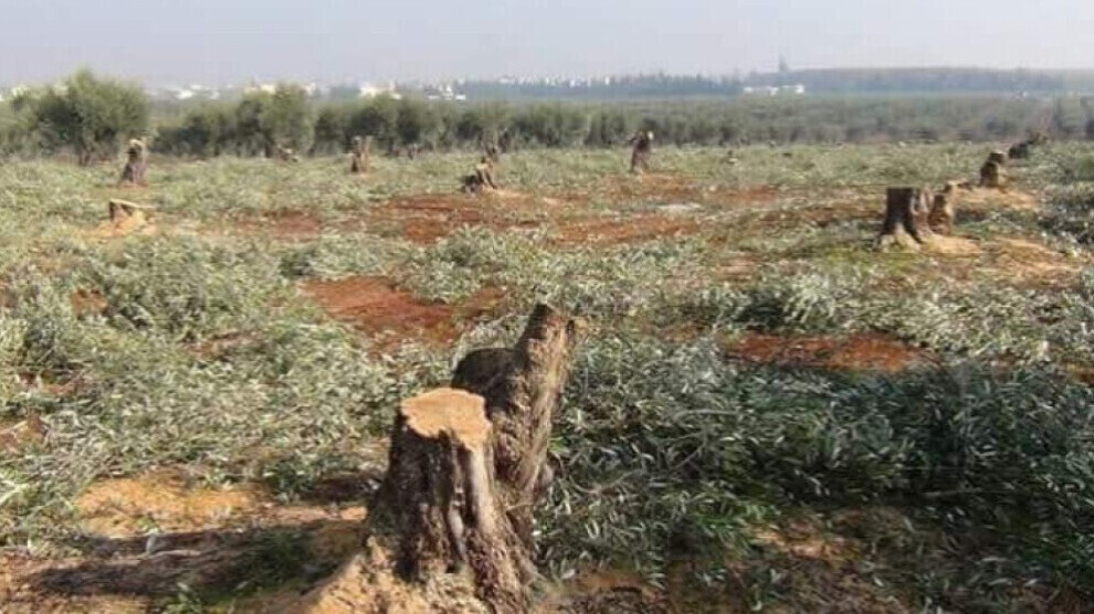 قطعت دولة الاحتلال التركي، 2500 شجرة زيتون في قريتي باسوفان وحيدر في شيراوا في عفرين.