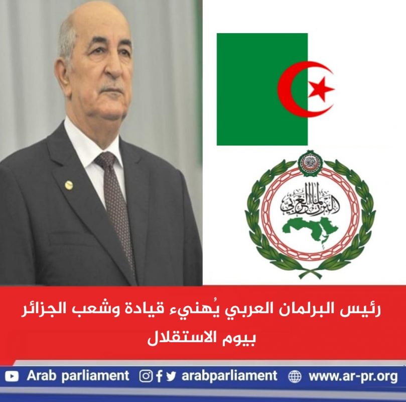 وأكد رئيس البرلمان العربي أن يوم الاستقلال في الجزائر يمثل دائماً حدثاً وطنياً نبيلاً، يعزز الوحدة الوطنية ويرسخ الشعور بالانتماء للوطن، ونستحضر فيه التضحيات الباسلة، التي قدمها الشهداء الأبرار من أبناء الشعب الجزائري، وسطَّرها التاريخ بدمائهم الطاهرة، طوال مسيرة كفاحهم المُشرِف ضد الاستعمار، ومن أجل نيل الحرية والاستقلال.