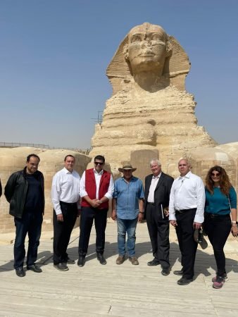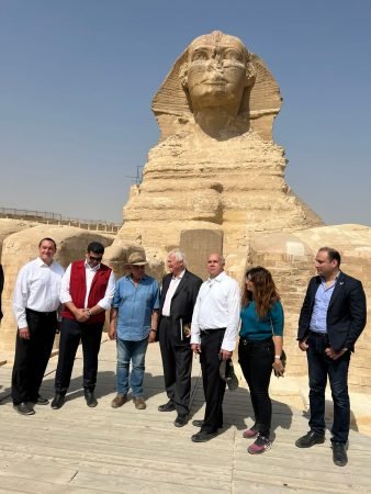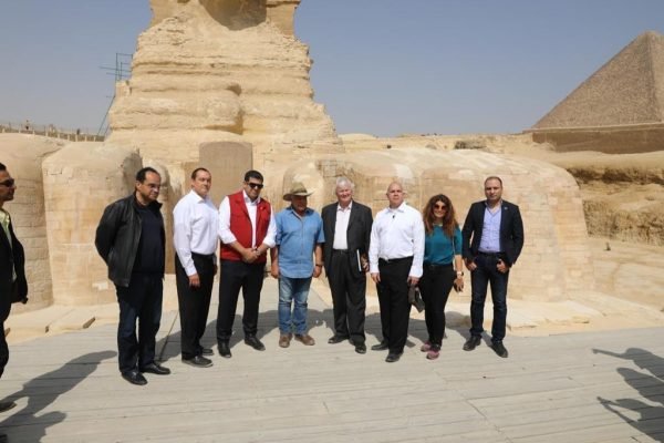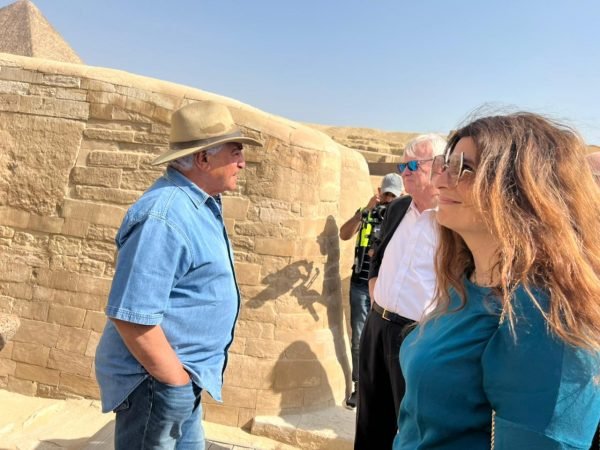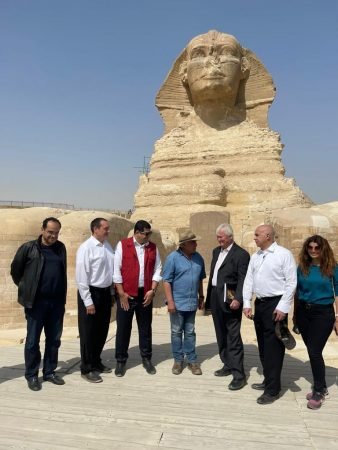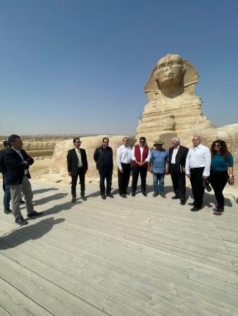 وشرح “حواس” لهم كيفيه بناء الأهرامات وتحدث عن المهندس المعماري المصري “عنخ خاف” والمهندس “حم إينو” مهندسين الأهرامات.