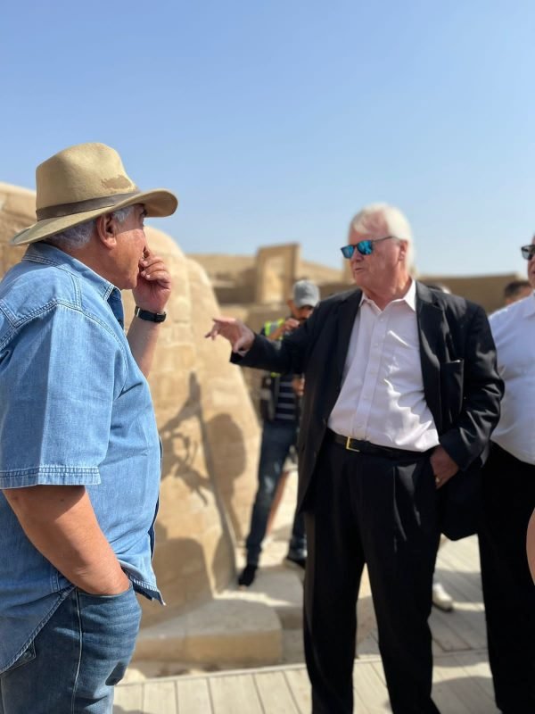 ألتقي اليوم عالم الآثار المصرية الدكتور “زاهي حواس” المهندس المعماري الشهير “أدريان سميث”، وشريكه المهندس”جولدن هيل”، الذين قاموا بتصميم برج خليفة أطول برج في العالم، وذلك أثناء زيارتهم لمصر لتنفيذ مشاريع كبري في العاصمة الإدارية الجديدة.