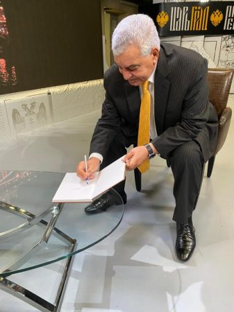 ووقع عالم الآثار المصرية الدكتور”زاهي حواس” كتابه عن سحر الأهرامات والذي ترجم باللغة الروسية.