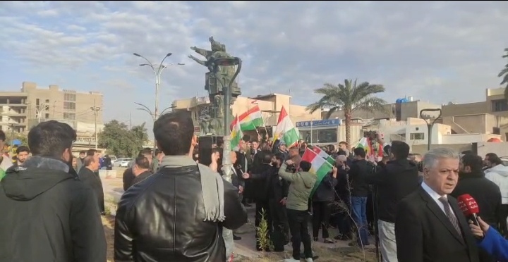 كرد فيليين وعرب في بغداد يتظاهرون دعما لكرد سوريا وتنديدا بوحشية مرتزقة الجولاني وتركيا.. فيديو