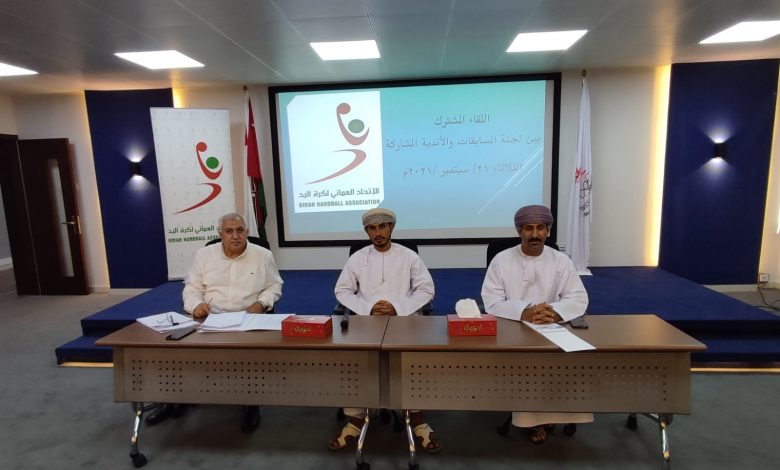 رفعت لجنة المسابقات بالاتحاد العماني لكرة اليد المقترحات التي تم اعتمادها من قبل ممثلي الأندية المشاركة في مسابقات الاتحاد للموسم الرياضي الجديد 2021ـ2022 إلى مجلس إدارة الاتحاد لاعتمادها النهائي، جاء ذلك في الاجتماع المشترك الذي عقد بقاعة الاجتماعات بمبنى اللجنة الأولمبية العمانية والاتحادات الرياضية بحضور محمد بن سالم العلوي رئيس لجنة المسابقات بحضور نصر الحسني نائب رئيس اللجنة وزهير سمحة خبير الحكام بالاتحاد بحضور ممثلي 11 ناديا من أصل 27 ناديا التي أكدت مشاركتها في مسابقات الموسم الرياضي الجديد وهي السيب وأهلي سداب ومسقط ونادي عمان ومن دوري الدرجة الثانية البشائر والسويق ونزوى وقريات والخابورة وصحم المشارك في درع الوزارة وبهلاء المشارك مسابقة دوري الناشئين.