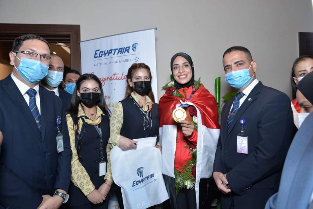 وجهزت شركة ميناء القاهرة الجوي، صالة الخدمة المميزة بمطار القاهرة الدولي بمبنى الركاب رقم 2، لاستقبال أبطال مصر، وتم التنسيق مع الإدارة العامة لشرطة ميناء القاهرة الدولى، لتيسير وتسهيل تواجد الجماهير أمام صالة الوصول لاستقبال فريال أشرف وأحمد الجندي، مع الالتزام بتطبيق كافة الإجراءات الإحترازية اللازمة.