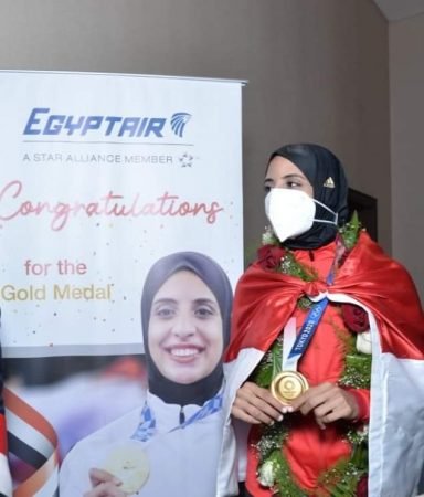 وصلت مطار القاهرة الدولي، قبل قليل، البطلة الأولمبية المصرية فريال أشرف الحاصلة على الميدالية الذهبية بمنافسات الكاراتيه بدورة الألعاب الأولمبية التى أقيمت فى طوكيو خلال الفترة من 23 يوليو حتى 8 أغسطس الجاري.