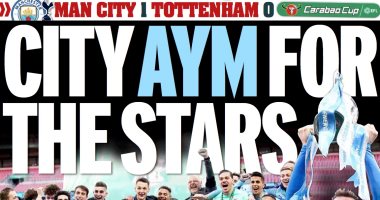 واحتفلت الصحف الإنجليزية بتتويج مان سيتي بلقب كأس الرابطة بعد الفوز علي توتنهام بهدف نظيف فى المباراة النهائية.