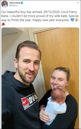 ونشر هارى كين، عبر حسابه بموقع تويتر:” لقد وصل ولدنا الجميل 29/12/2020. لويس هاري كين. لن أكون أكثر فخرا بزوجتي كيت، طريقة خاصة لانهاء العام. سنة جديدة سعيدة للجميع”.
