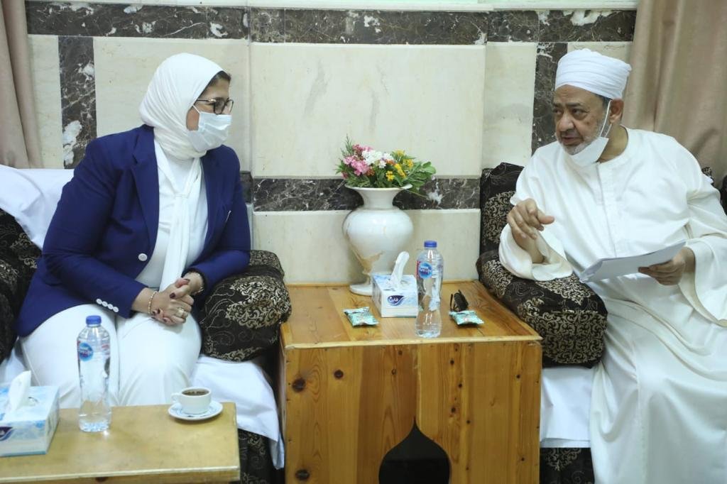 وزيرة الصحة تلتقي فضيلة الإمام الأكبر شيخ الأزهر الشريف بمدينة القرنة