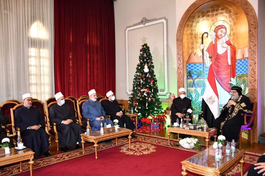 قام صباح اليوم الثلاثاء 1/4/ 2022م كل من: فضيلة الإمام الأكبر أ.د/ أحمد الطيب شيخ الأزهر الشريف، ومعالي وزير الأوقاف أ.د/ محمد مختار جمعة، بزيارة الكاتدرائية المرقسية بالعباسية لتهنئة قداسة البابا تواضروس الثاني بابا الإسكندرية وبطريرك الكرازة المرقسية وسائر قيادات الكنائس المصرية بالعام الميلادي الجديد، وقد وجه فضيلة الإمام الأكبر والوفد المرافق خلال اللقاء التهنئة لجميع الطوائف المسيحية.
