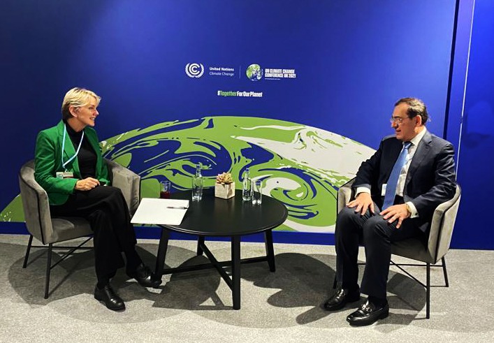 عقد المهندس طارق الملا وزير البترول والثروة المعدنية جلسة مباحثات ثنائية مع السيدة جينفر جرانهولم وزيرة الطاقة الامريكية على هامش مشاركته في فعاليات القمة العالمية للمناخ فى جلاسكو باسكتلندا Cop26.
