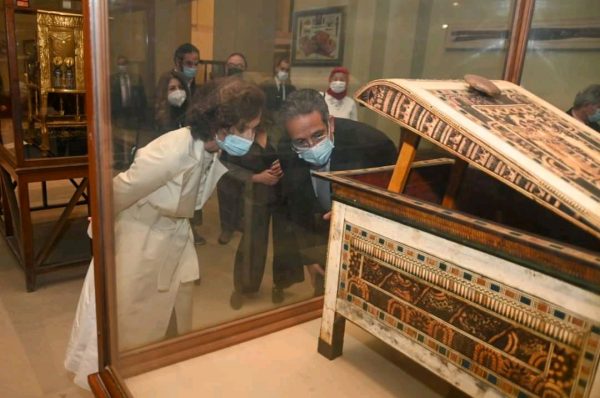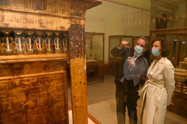 وقد أعربت مدير عام منظمة اليونسكو عن إعجابها البالغ بكافة مقتنيات المتحف ولا سيما كنوز الملك الذهبي توت عنخ أمون ومجموعتي یویا وتویا.