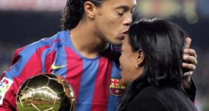 برشلونة يعزى رونالدينيو فى وفاة والدته برسالة وصورة لهما مع الكرة الذهبية
