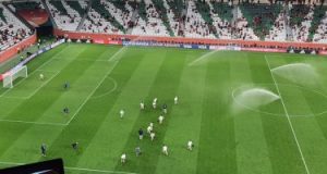 إصلاحت فورية بملعب المدينة التعليمية بين شوطى مباراة الأهلي وبالميراس.. صور