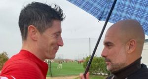 جوارديولا يزور ليفاندوفسكى فى معسكر بولندا