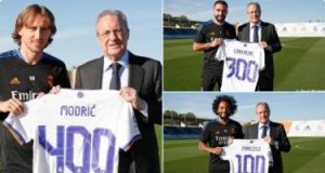 رئيس ريال مدريد يُكرم مارسيلو ومودريتش وكارفخال بعد الكلاسيكو