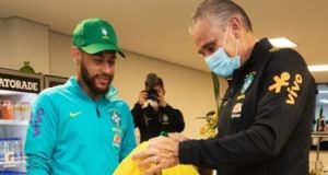 نيمار يهدي مدرب البرازيل قميصا خاصا بمناسبة ذكرى تدريب السيليساو.. فيديو