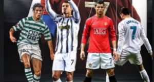 رونالدو يحتفل بتخطيه أهداف بيليه بصورة تجمع قمصان منتخب بلاده و4 أندية لعب لها