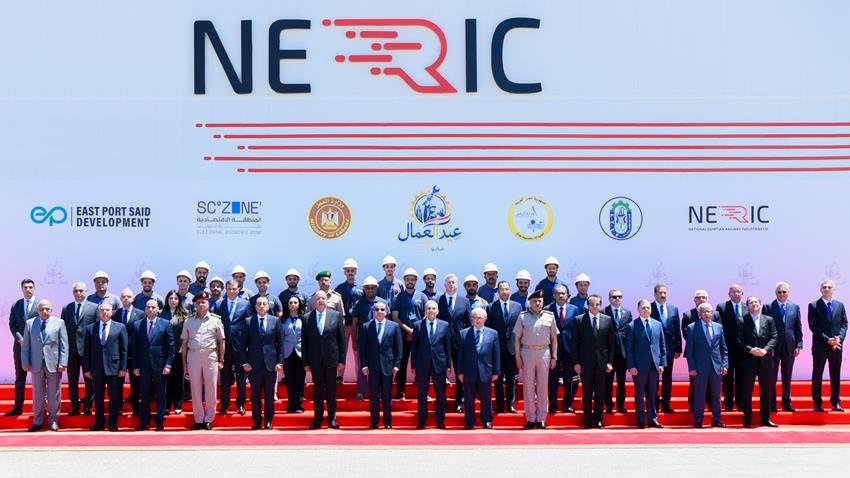 Today, President Abdel Fattah El-Sisi participated in the Labor Day celebration, which was held at the headquarters of the National Egyptian Railway Industries Company (NERIC) in the Suez Canal Economic Zone, East Port Said. Upon his arrival, the President was received by Speaker of the House of Representatives Counselor Hisham Badawy, Speaker of the Senate Counselor Essam El Din Ahmed Farid, Prime Minister Dr. Moustafa Madbouly, Deputy Prime Minister for Economic Affairs Dr. Hussein Issa, Commander-in-Chief of the Armed Forces and Minister of Defense and Military Production Lieutenant General Ashraf Salem Zaher, Chief of Staff of the Armed Forces Lieutenant General Ahmed Khalifa, Minister of Transport Lieutenant General Kamel El-Wazir, as well as a number of ministers, the Governor of Port Said, the Chairman of the General Authority for the Suez Canal Economic Zone, Chairman of NERIC and the President of the Egyptian Trade Union Federation.